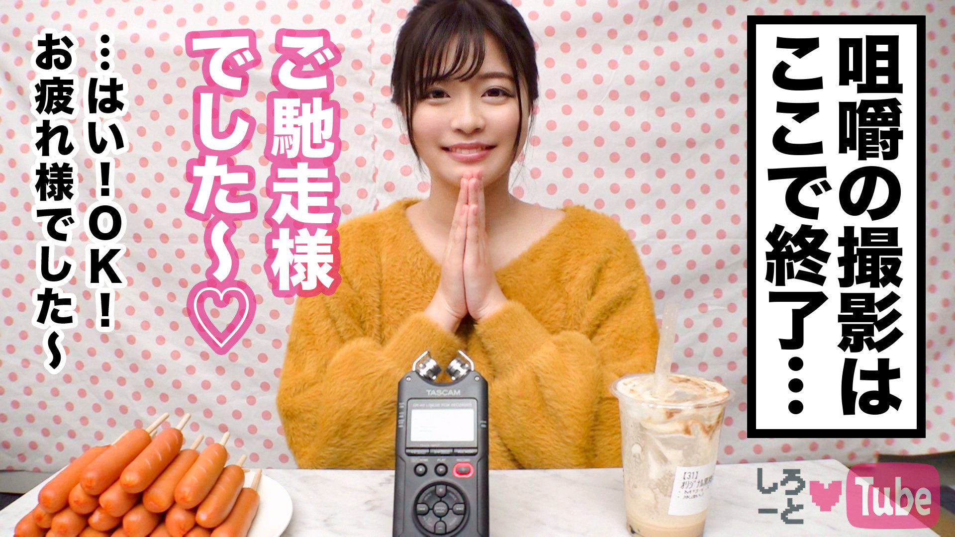 ASMRとは人が聴覚や視覚への刺激によって感じる、快感、脳がゾワゾワするといった反応・感覚であり直訳すると「自律感覚絶頂反応」となる。そして今回、我々は某動画サイトにASMR動画を投稿している素人女性に独自でアポをとり、ASMR動画を一緒に撮影してもらいたいとお願いしホテルへ誘い込み、そしてあの手この手でエッチな音まで収録してしまおうとする企画である。今回協力してくれたのは可愛さアイドル級の女子大生かのんちゃん!早速撮影を開始!最初は咀嚼音を録るためにお菓子などを食べてもらう。カメラで録られていることに少し戸惑いながらも食べることが大好きな彼女は綺麗な音を鳴らしながらたくさん食べてくれました。一通り咀嚼音を録ったあといよいよ本題!ディルドを舐めて欲しいとエッチなお願いをしてみると少し戸惑いながらも謝礼アップという条件でやっていただくことに!最初はぎこちなくおしゃぶりをする彼女だったが次第に目をトロンとさせながらディルド舐めに没頭!そしてディルドを丸飲みにして激しくしゃぶりまくるかのんちゃん。そこに男が突入!ギンギンに勃起したデカチ〇を差し出しこっちもしゃぶって欲しいとお願いすると少し躊躇したが、我慢が出来なかったのか徐に男のチ〇コを口に咥えしゃぶり始めたかのんちゃん。ヨダレをダラダラ流しながら激しくしゃぶりまくる!我慢できなくなったのか自らオマ〇コに手を伸ばしオナニー→セルフ潮吹き!愛液でびしょびしょになったオマ〇コにデカチ〇を挿入!激しいピストンに何回もイキまくる彼女!「もうだめぇ!」と言われても突くのヤメナイ追撃ピストンの嵐!イッてるそばからイカされる!完全トランス状態突入!最後は可愛いお顔にたっぷりザーメンかけてあげました♪